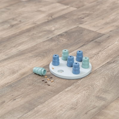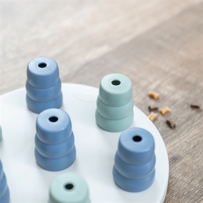 Op het bord staan 7 kegels die je stevig vast kunt drukken. Jouw hond moet daardoor echt de kegels optillen om het lekkers dat eronder verstopt ligt te pakken te krijgen.