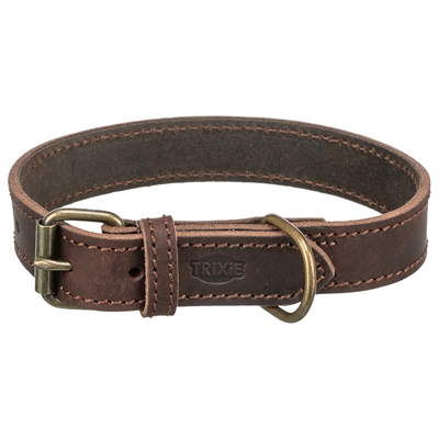 Trixie halsband hond rustic vetleer donkerbruin (34-40X2,5 CM)