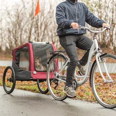 De Trixie Hondenfietskar Grijs/Rood is een praktische fietskar waarmee je jouw hond eenvoudig meeneemt tijdens fietstochten. De afgesloten cabine met gaasvensters zorgt voor ventilatie en zicht rondom, terwijl de stevige wielen bijdragen aan een stabiele rit. Dankzij de opvallende vlag ben je beter zichtbaar onderweg en de koppeling maakt het mogelijk de kar aan de fiets te bevestigen. Ideaal voor langere afstanden of wanneer je hond minder ver kan meelopen. Maximale draagkracht is 22 kg.