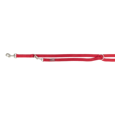 De Trixie Hondenriem Premium Verstelbaar Tweelaags Rood 200 x 1,5 cm is een looplijn voor de hond, gemaakt van tweelaags singelband en drievoudig verstelbaar, met oogje voor de penning of flasher. Een handige looplijn die door zijn verstelbaarheid zeer flexibel is. Je kunt de riem drievoudig verstellen door de musketonhaak aan één van de gewenste ringen te klikken. Gemaakt van stevig, tweelaags singelband en met oogje om de hondenpenning of een lampje aan vast te maken.