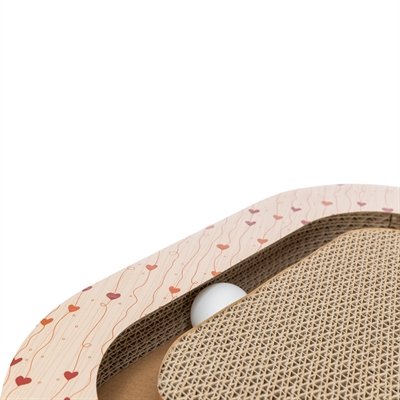 De Trixie Krabplank Valentijn Met Ballen Driehoekig Karton Abrikoos is een functionele krabplank voor katten, uitgevoerd in een vrolijk valentijnsthema. De krabplank is gemaakt van stevig karton en biedt een aantrekkelijk oppervlak om te krabben, wat helpt om het natuurlijke krabgedrag te ondersteunen. De geïntegreerde speelballen zorgen voor extra prikkels en nodigen uit tot spel, terwijl het driehoekige ontwerp geschikt is voor gebruik op de vloer of in een favoriete rusthoek.