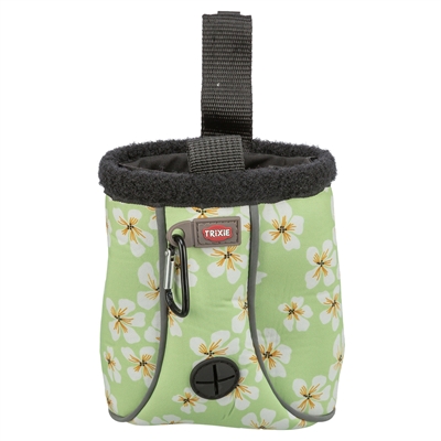 De Trixie Snackzakje Twist Treat Lente Assorti is een praktische snacktas voor hondentraining en wandelingen, uitgevoerd met een frisse lenteprint. Het zakje biedt ruimte om beloningssnoepjes bij de hand te houden tijdens training of onderweg. Dankzij de clip aan de achterzijde kan het snackzakje eenvoudig aan een riem of broekband worden bevestigd. De zachte rand zorgt voor een gemakkelijke opening, zodat snacks snel gepakt kunnen worden. Aan de voorzijde bevindt zich een klein ritsvakje voor bijvoorbeeld poepzakjes of kleine accessoires.